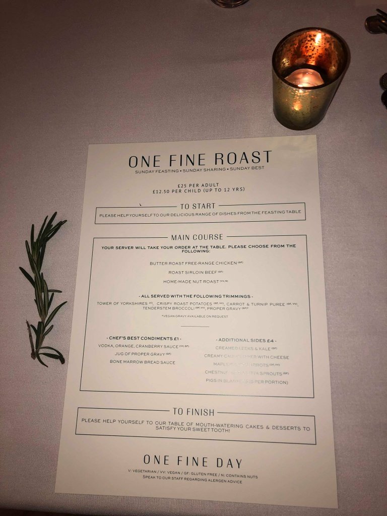 Once washing our food down with some drinks, we left One Fine Day with a belly full of great food and drinks. The atmosphere of the venue, the kind staff and amazing food all contributed to making the perfect roast dinner experience.