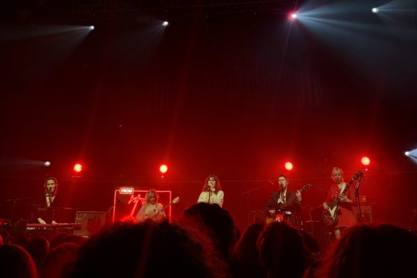 From the outset, all five members of the band sang, swapping leads and stacking harmonies until The Dome seemed to vibrate with sound. Their collective voice has always been the band’s ‘secret weapon’, and nowhere was that clearer than during their rendition of ‘Woman is a Tree’. Instruments fell silent and the band came together centre stage for an acapella start to the song that swelled into a fierce, almost ritualistic war cry.