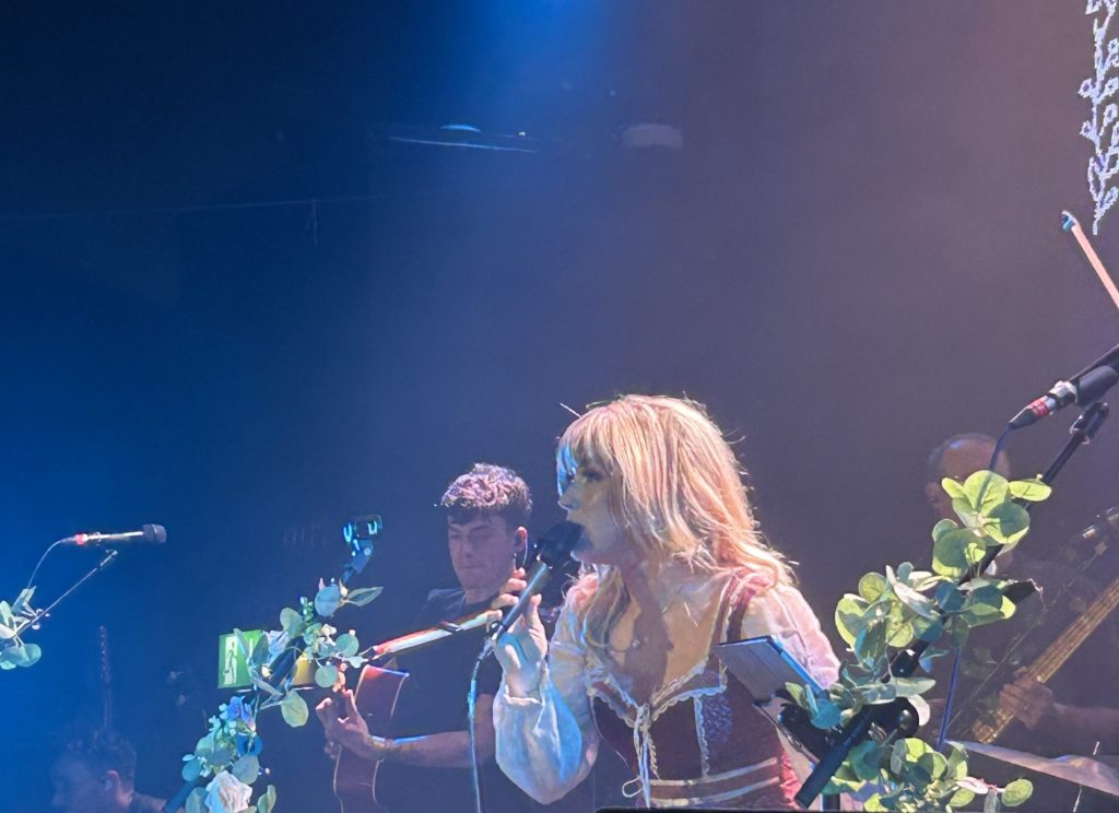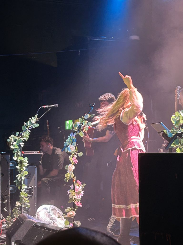 Before each song was played she gave us some background to its creation, which I found helped me to connect more to the music, especially as a fairly new listener. She described herself as away with the fairies a lot, a sentiment reflected in the etheral folkish music of ‘The song of old-glencoe.’ This song you can imagine being played in an old-style tavern in the middle of the wilderness. Or perhaps in a fantasy adventure movie, as the main characters cross the scottish glen and wilderness, leaving home behind for the first time, but discovering themselves along the way. People began to sway around me and sing along to this, further adding to the cosy tavern feel of the music. Her stage presence was captivating, the drum, a beating along of her heart and her voice transporting us to this wild land.