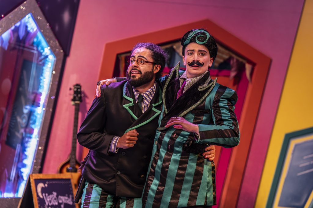 What makes the Everyman’s panto productions so unique are the talented musicians at its core. I wasn’t fully sure what a ‘Rock and Roll’ panto would mean before going. Essentially, all of the actors are also the production’s musicians. They play live on a balcony on top of the stage, or in character during their scenes. I was in awe of the talent on display as the actors jumped in and out of their different roles, singing and playing multiple instruments.