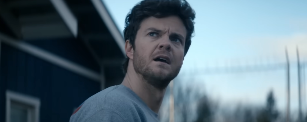 After, we are given a medium shot of Hughie turning towards the camera to look upwards. This is amplified by a voiceover of “I’m gonna keep on fighting”. To start, the location he seems to be in is the same facility. So, I imagine this is early on into the season, ensuring continuity to S4 when The Boys were captured. We know he is a prisoner here because of the American flag on the back of his jumper. I think we can assume here that he is either looking at a Supe who can fly – maybe Homelander – or a helicopter. Or perhaps some sort of transmission being shared on a speaker.