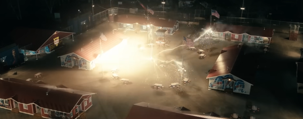 Homelander lands another punch, with it cutting to a fish on the ground (this could imply that The Deep is actually the victim of this attack but I’m in the belief it is Ryan). The Deep is shown covered in what I think is squid ink and A-Train puts on his iconic blue shades. We can see another callback to the Freedom Camp, making me think that A-Train is helping out Starlight and Butcher in this situation (if you’ve watched the show up to this point, then you’re aware of his redemption arc which has been developing throughout).